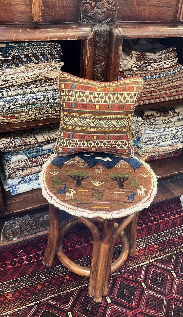 イラン国内でも評価が高い、南イランのシールジャン産のソマック織りキリムをクッション表地に使用しています。