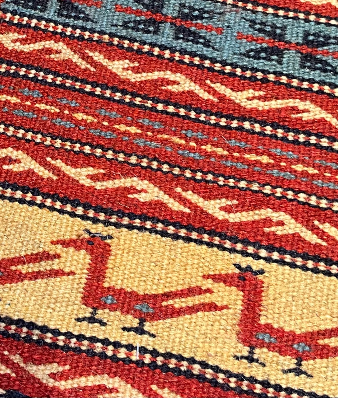 薄い織り上がりのキリムですが、ウールで織られているので、床の冷たさを感じさせず、また暑い季節でもスッキリとしたお使い心地で、オールシーズン活躍します。