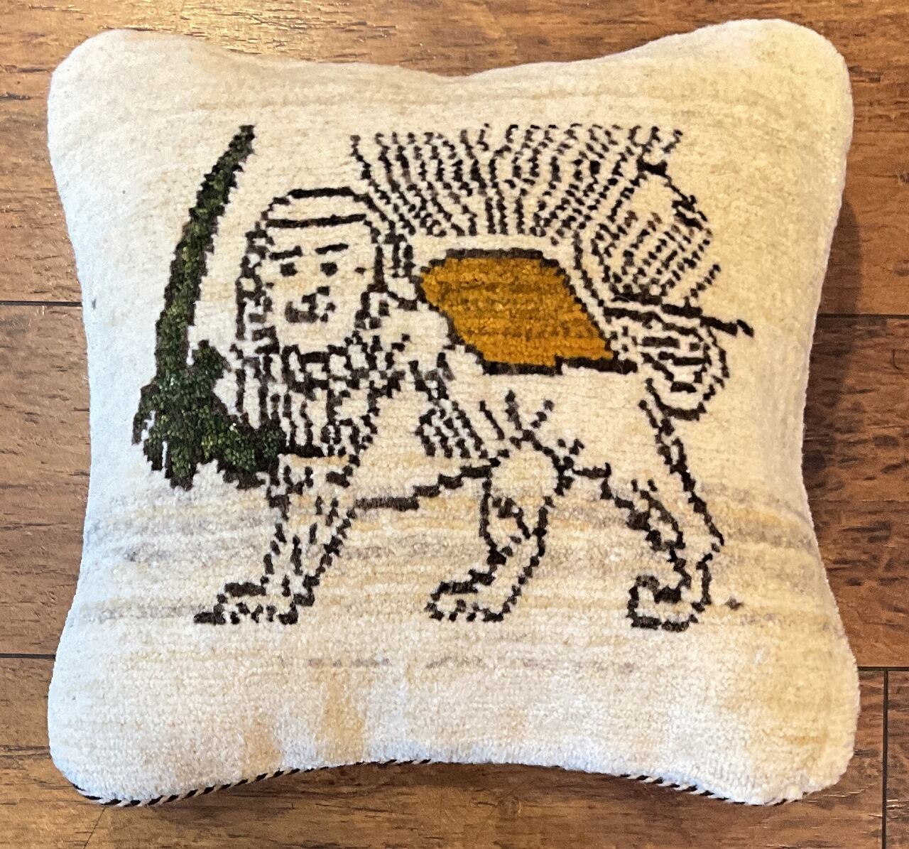 ◉ミニサイズのギャッベをクッションにお仕立てしたものです。中綿付きでお届け致します。