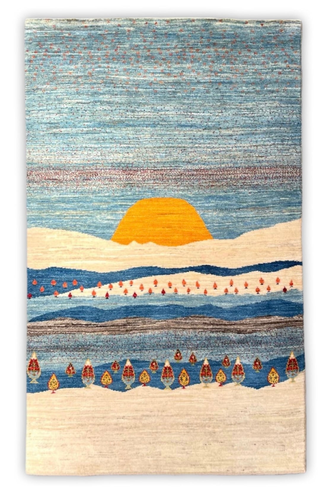 重量のあるギャッベも、当店オリジナルの手法でタペストリー加工させて頂きます。ご用命お待ち致しております。