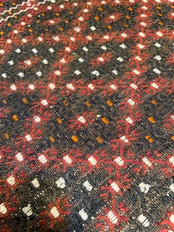 バルーチ族の絨毯は個性的な印象ですが、西イランの部族絨毯やキリムはもちろん、都市で織られた正統派のペルシャ絨毯にも良く合い、インテリアを選ばない不思議な魅力がある絨毯です。織り上がりは1cm程度でそれほど分厚くはありませんが、しっかりとしており織り目が詰まった絨毯です。
