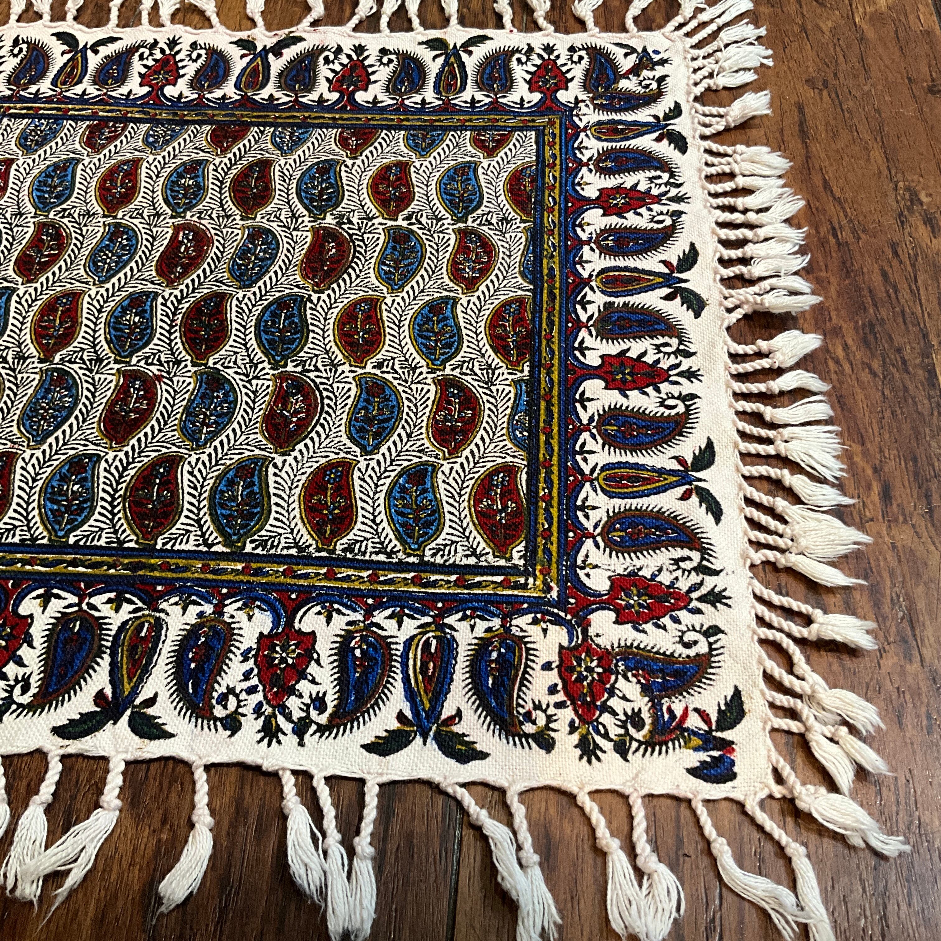 ペルシャ更紗は、イランの古都イスファハンで、伝統的な手法で作られているハンドプリントの手工芸品です。ペルシャ語では「ガラムカーリ」と呼ばれます。更紗職人により、梨の木を繰り抜いて作られた木判で、押し染めを繰り返してデザインを作っていきます。紋様を一つ完成させるのにも、異なる型判や色を塗り替えて押すので、紋様が出来上がるまでには4〜5回もの作業を必要とします。