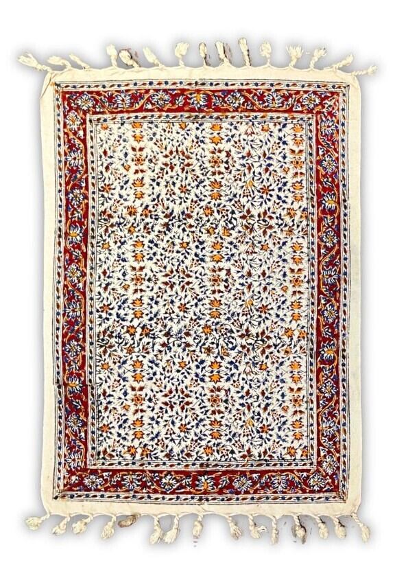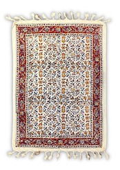 ペルシャ更紗は、イランの古都イスファハンで、伝統的な手法で作られているハンドプリントの手工芸品です。ペルシャ語では「ガラムカーリ」と呼ばれます。更紗職人により、梨の木を繰り抜いて作られた木判で、押し染めを繰り返してデザインを作っていきます。紋様を一つ完成させるのにも、異なる型判や色を塗り替えて押すので、紋様が出来上がるまでには4〜5回もの作業を必要とします。