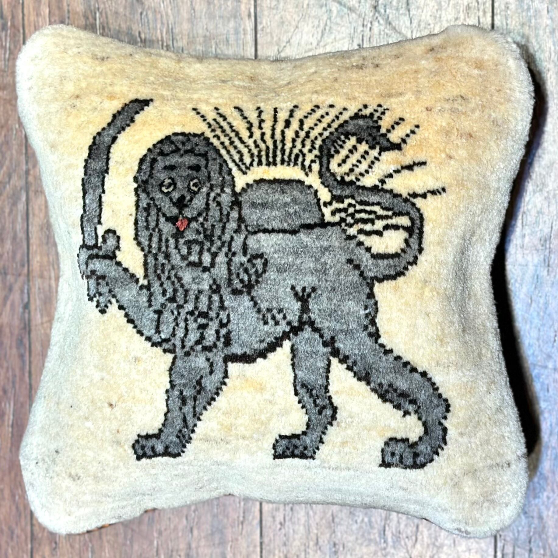 ◉ミニサイズのギャッベをクッションにお仕立てしたものです。中綿付きでお届け致します。