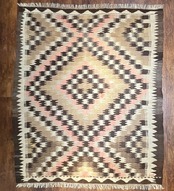 「鉄の絨毯」でご存知の方も多いかもしれません、北西イラン・ビジャー産のオールドキリムです。ビジャーの絨毯のデザインはヨーロッパの嗜好にも影響を受けましたが、キリムを見ると等身大の産地が見えるよう。渋カッコいい原毛基調のモダンな配色で、大きな菱形のグリッドには、