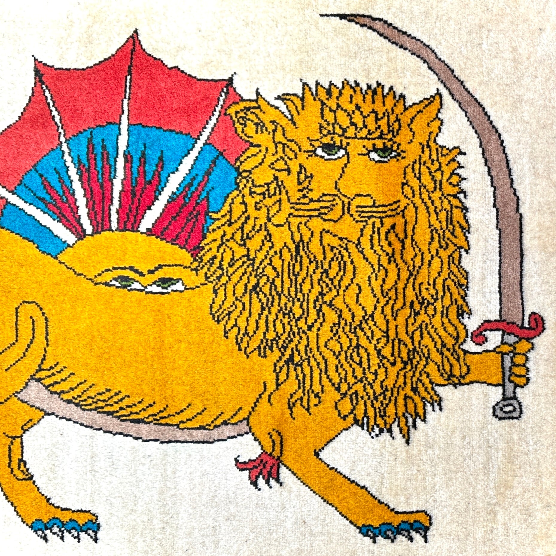 ペルシャ帝国を象徴する、剣を握ったライオンから太陽が顔を覗かせる「シィールホルシード」のモチーフです。