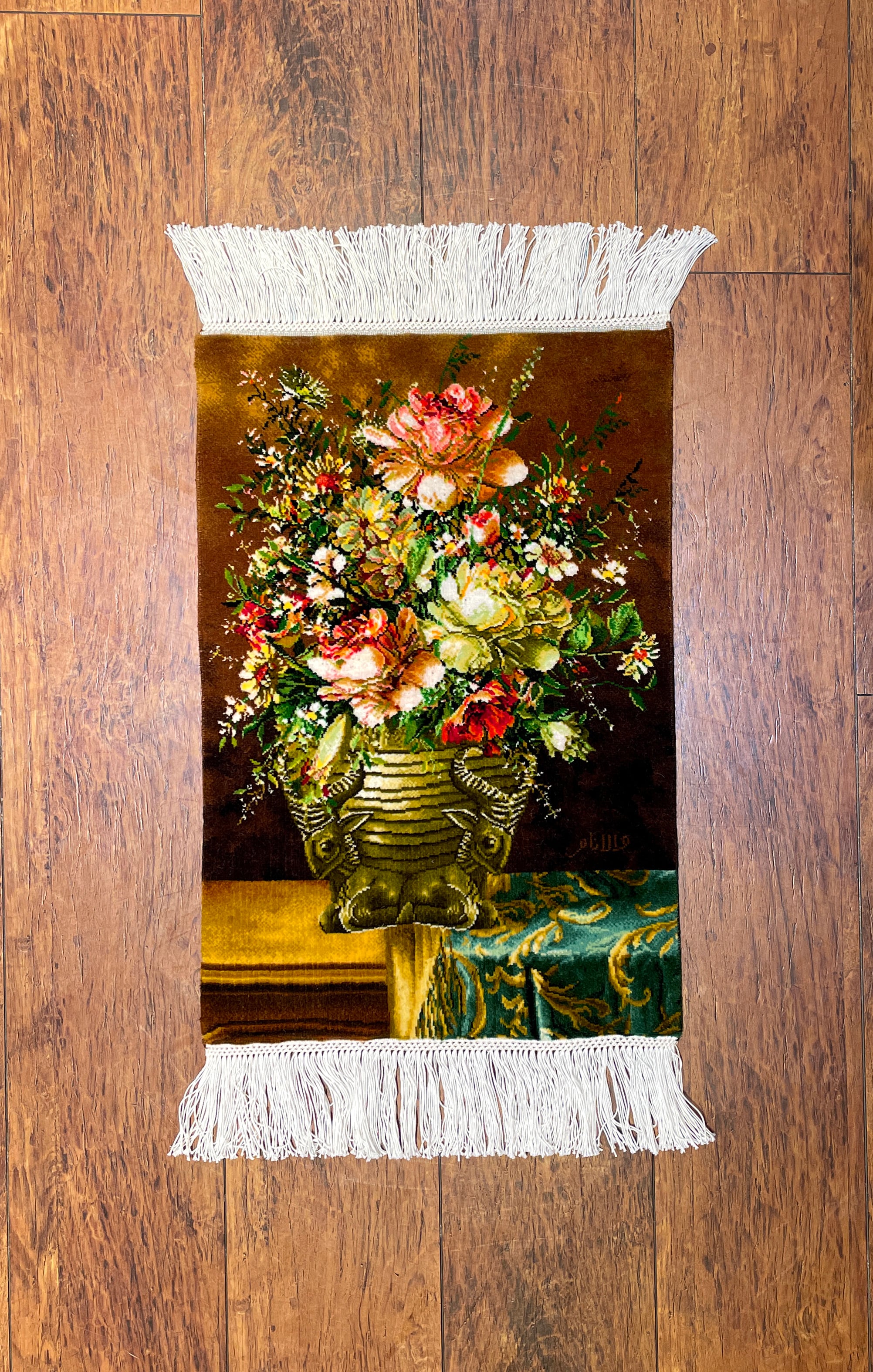 こちらは気軽に楽しめる絨毯ですが、、シルクも織り交ぜられた見ごたえのある作品です。