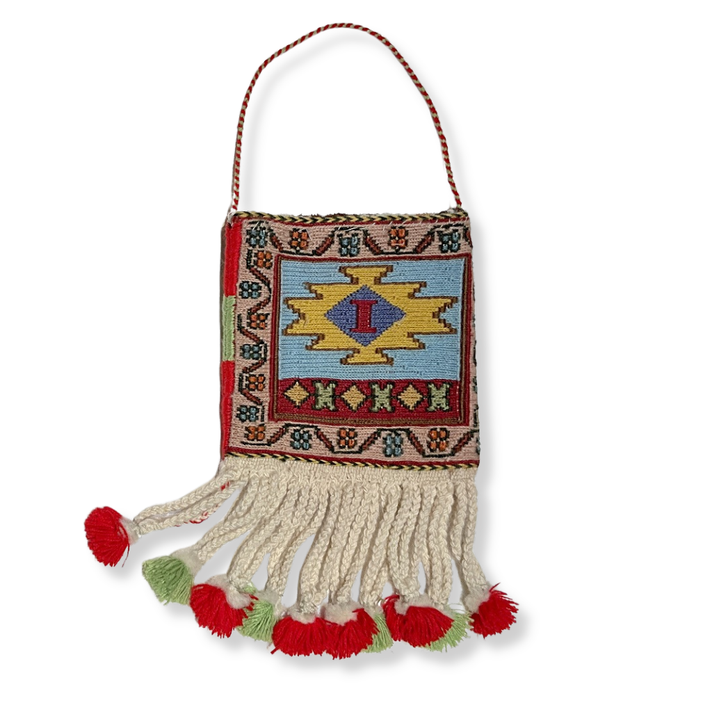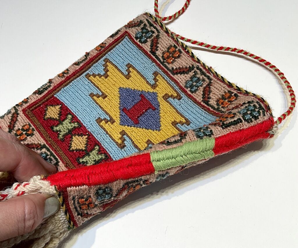 南イラン、シールジャン産のソマック織りキリムで作られた小さな袋物です。古くはイラン各地の遊牧民族は身近な素材であるウールを敷物や掛物だけではなく、袋物も作り生活用品としていました。小さな袋は古くから作られており、こまごまとした生活の品々を収納していました。