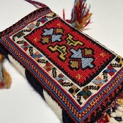 南イラン、シールジャン産のソマック織りキリムで作られた小さな袋物です。古くはイラン各地の遊牧民族は身近な素材であるウールを敷物や掛物だけではなく、袋物も作り生活用品としていました。小さな袋は古くから作られており、こまごまとした生活の品々を収納していました。