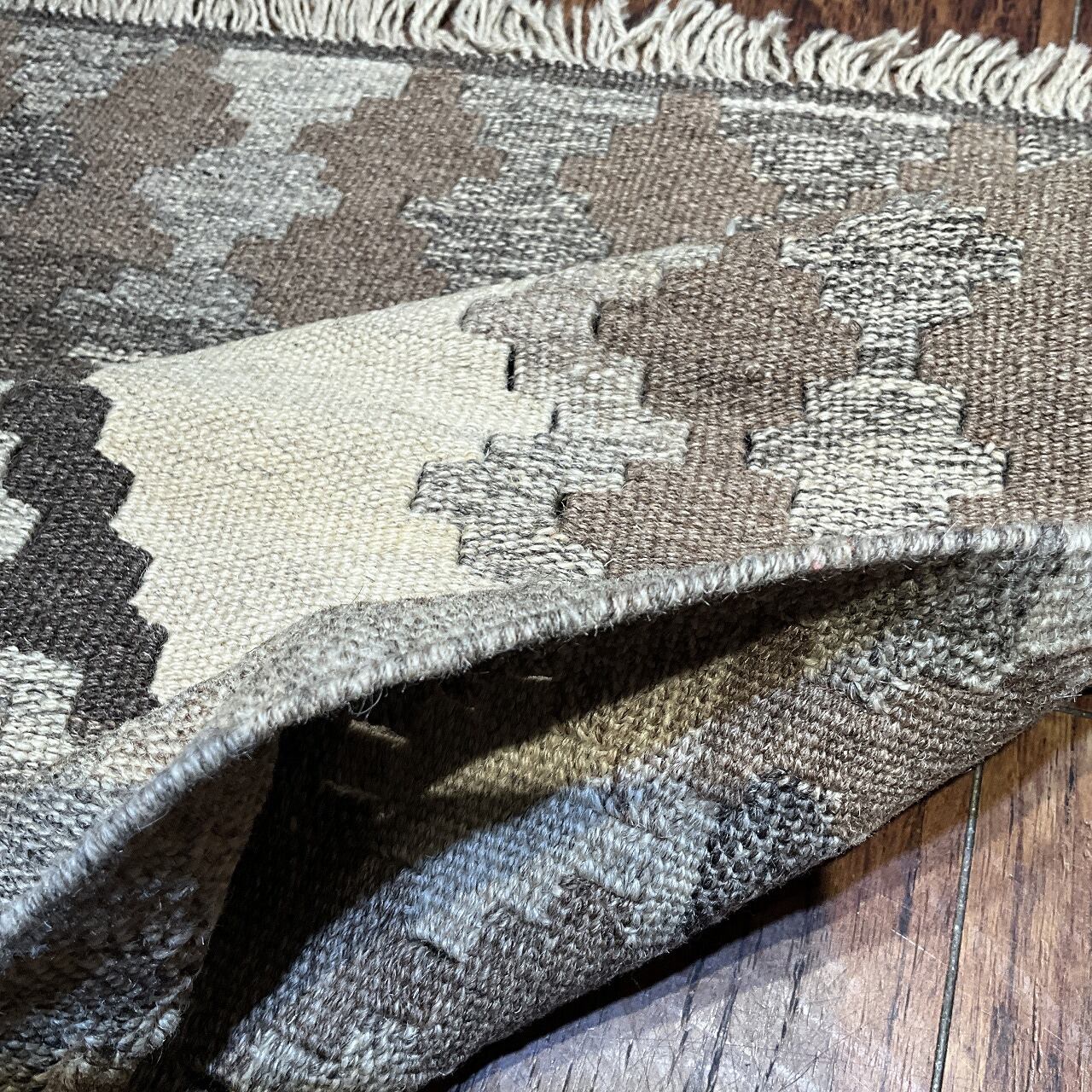 薄い織り上がりのキリムですが、ウールで織られているので、床の冷たさを感じさせず、また暑い季節でもスッキリとしたお使い心地で、オールシーズン活躍します。