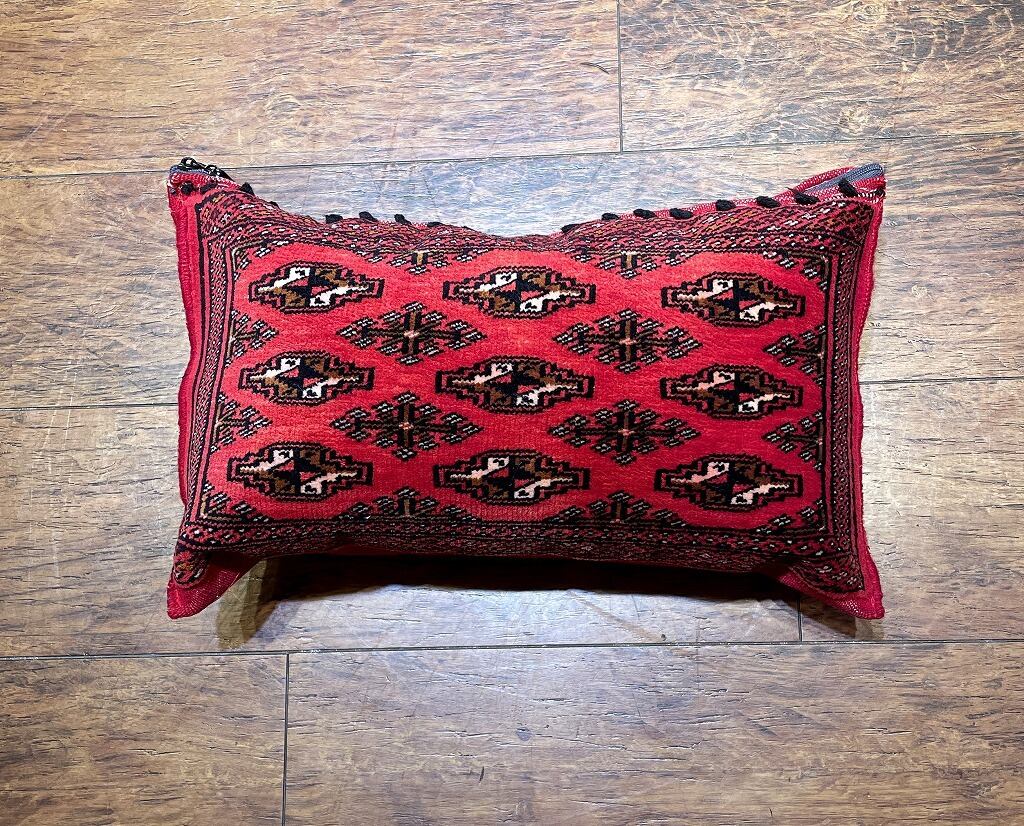 トルキャマン族の絨毯は緻密な織りで薄い織り上がりが特徴のひとつ、肌触りも良く、しなやかでクッションにしても美しい姿です。