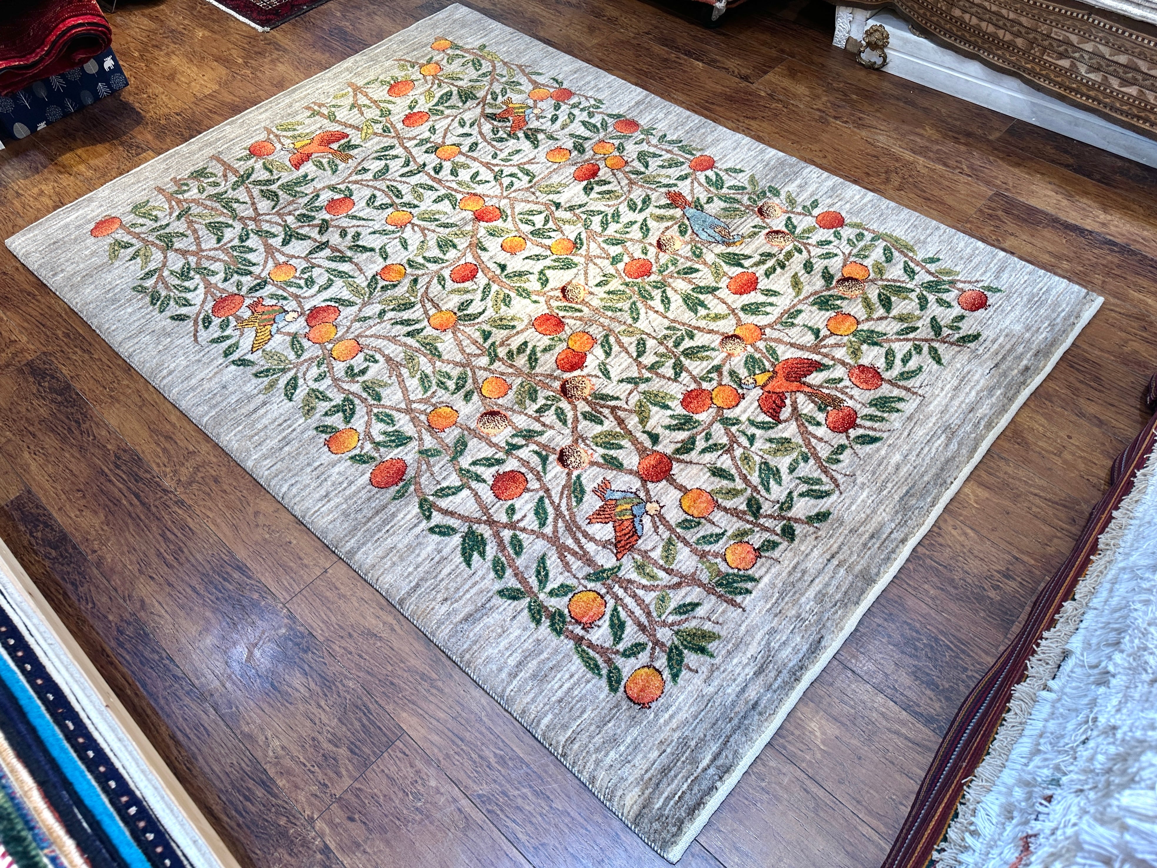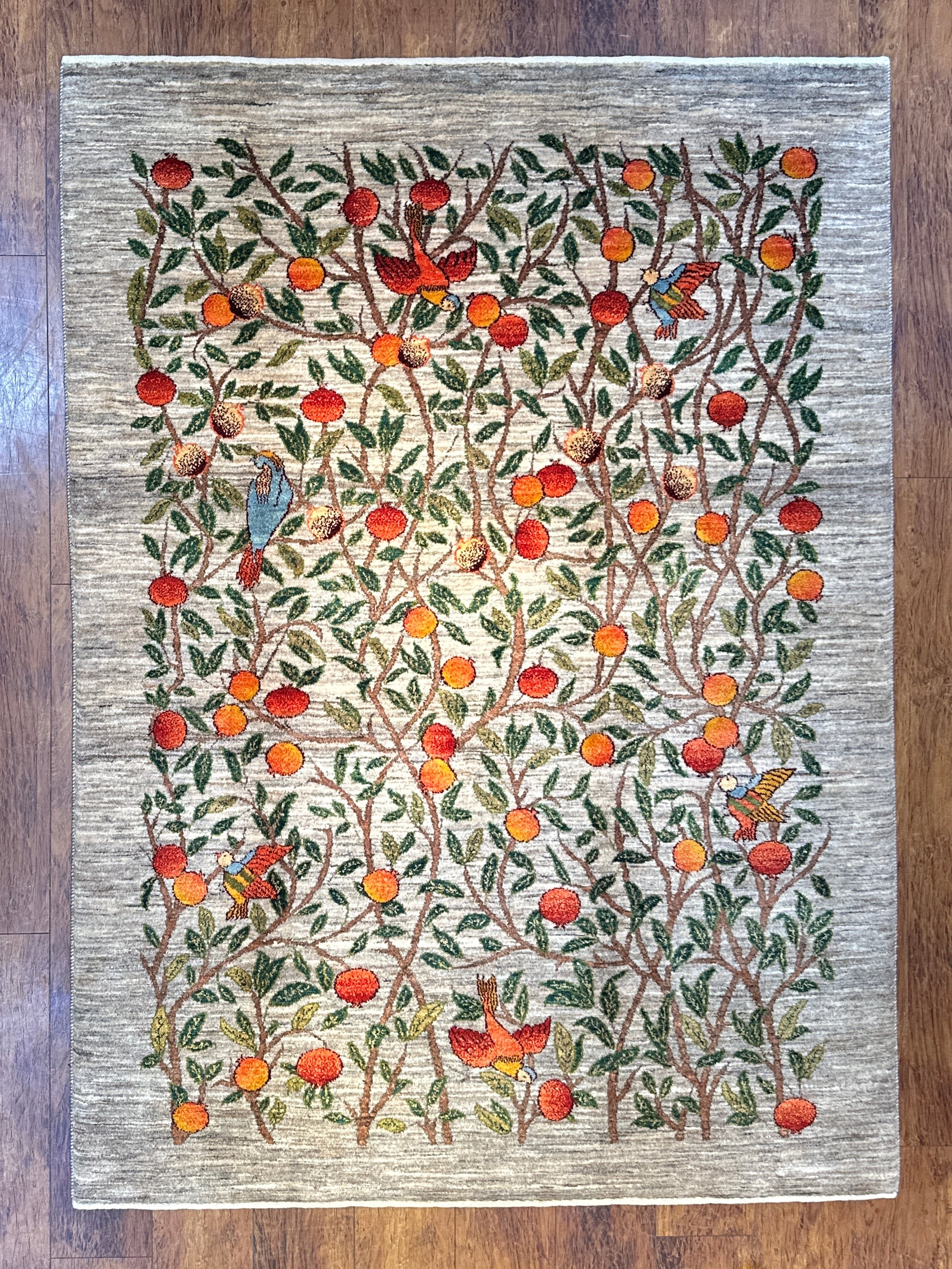 素材は100%ウールです。ウールは寒い季節は温かで、暑い季節もサラリとして心地良く年中お使い頂けます。特に絨毯やギャッベは毛足があるため冬は毛足に暖房の温かさをため込み、夏は冷房の涼しい空気をため込みます。またウールは天然素材の中で最も湿気を吸う素材のため湿気のある季節でもお部屋を心地良い状態に近づけてくれます。